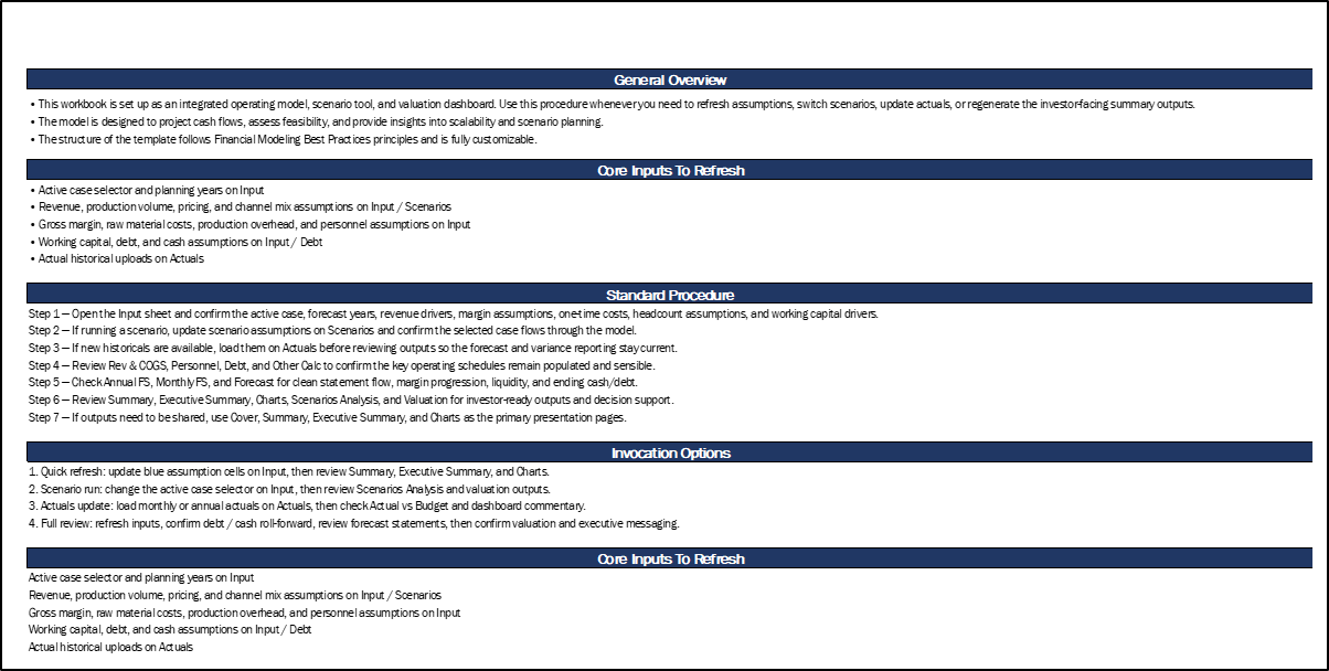 Investor-Ready Outputs:A highly polished "Executive Summary" tab showcasing sales growth, EBITDA margins, break-even analysis, and return on equity.